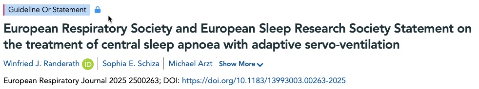ERS and ESRS Statement on the treatment of central sleep apnoea with adaptive servo-ventilation